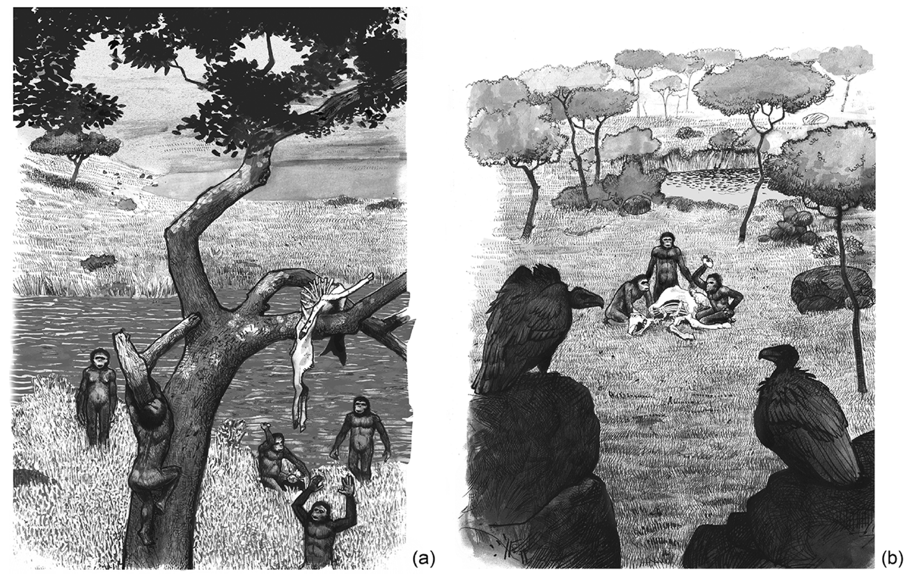 Некогда полыхавший спор о том, были ли наши пращуры хищниками либо падальщиками, разгорается с новой силой. Теперь, правда, объект спора переместился дальше в прошлое — обсуждают не ранних людей, а их предков — австралопитеков. В том, ели ли они мясо вообще, уверены далеко не все специалисты. Впрочем, выбор невелик. По самым смелым оценкам, род Homo появился 2,8 млн лет, а древнейшим орудиям 3,3 млн лет. Кроме австралопитеков, изготовить их было некому. Примерно настолько же стары самые ранние следы орудий на костях животных (из Дикики в Эфиопии). Правда, часть исследователей считает, что это всего лишь отметины от крокодильих зубов. Но дискуссия не об этом.