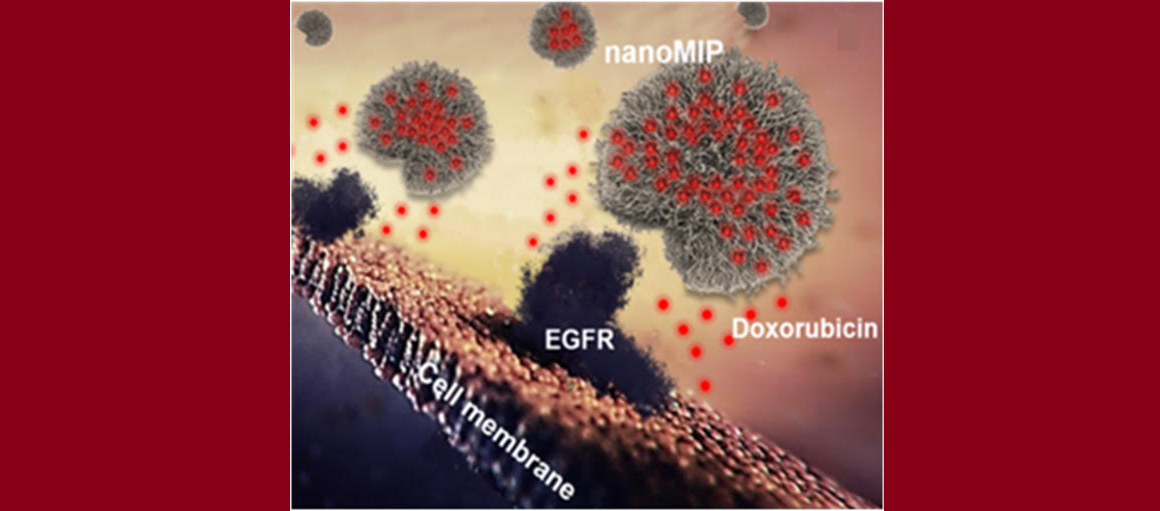 Синтез полимерной наночастицы происходит в присутствии молекулы-мишени, что приводит к образованию в nanoMIP отпечатков молекулы-мишени. Этот процесс можно сравнить со снятием форм для отливки, при котором конечный материал сохраняет очертания модели. Называется он импринтингом. При этом полученные «формы» приобретают способность специфично распознавать и связывать «молекулу-мишень». В проведённом исследовании в качестве мишени был выбран тирозинкиназный рецептор EGFR (epidermal growth factor receptor — рецептор эпидемального фактора роста). Его повышенное присутствие наблюдается в широком спектре опухолей — от колоректального рака, рака лёгкого, наиболее агрессивной формы рака молочной железы, трижды негативного РМЖ, до опухоли мозга. Именно в силу этих факторов EGFR стал одной из первых мишеней для противоопухолевых препаратов на основе антител. В данной работе наночастицы были получены методом двойного импринтинга против двух молекул мишеней — линейного эпитопа («эпитоп» — участок мишени, который узнаётся антителом при связывании) EGFR и цитотоксического лекарственного препарата доксорубицина. Таким образом, конечный продукт одновременно может связываться с EGFR и оказывать терапевтическое воздействие за счёт модификации доксорубицином.