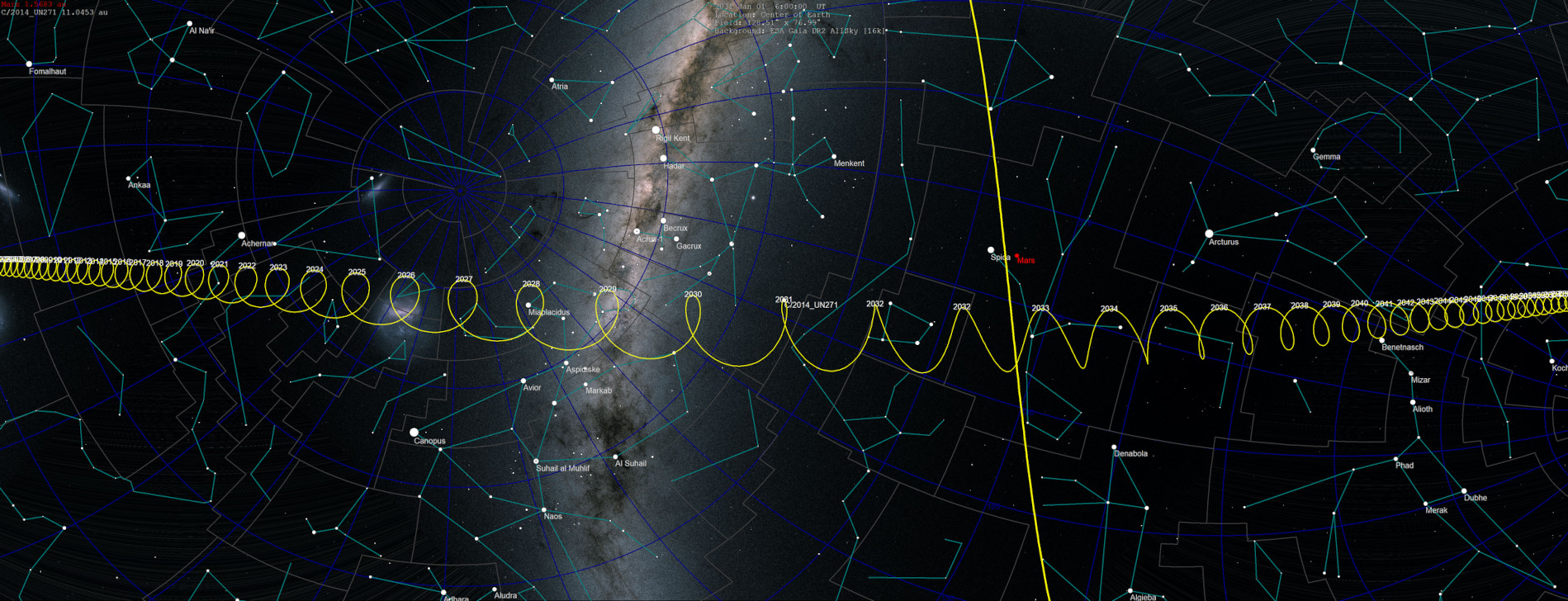 Комета UN271 приближается к перигелию, и наше поколение имеет уникальную возможность его наблюдать. В январе 2031 года комета пройдёт на расстоянии 10,9 астрономических единиц от Солнца, как раз за орбитой Сатурна. После периода сближения длиной в 2,8 миллиона лет комета начнёт удаляться, и фаза удаления продлится 4,6 миллиона лет до достижения афелия на расстоянии 55 000 астрономических единиц. Это расстояние составляет 87% светового года и одну пятую пути до ближайшей звезды Проксимы Центавра.