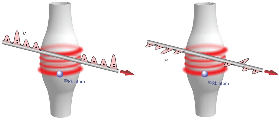 Австрийским учёным удалось реализовать создать нелинейную оптическую среду на микроуровне и добиться влияния друг на друга всего лишь двух фотонов. Для этого на пути света, движущегося по тонкому оптоволокну, они поместили резонатор, имеющий форму бутылки, который вдвое тоньше человеческого волоса. Из резонатора фотон выходит со сдвигом фазы на величину π.