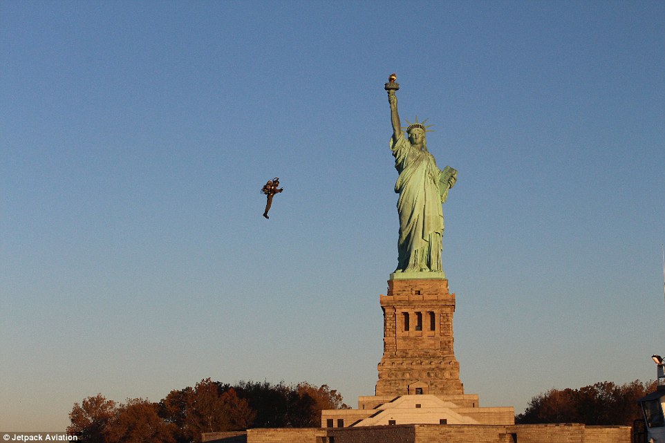 Дэвид Мейман (David Mayman) продемонстрировал публике созданный им реактивный ранец, облетев Статую Свободы в Нью-Йорке. Изобретатель надеется, что когда-нибудь подобное перемещение по воздуху станет обыденным делом.