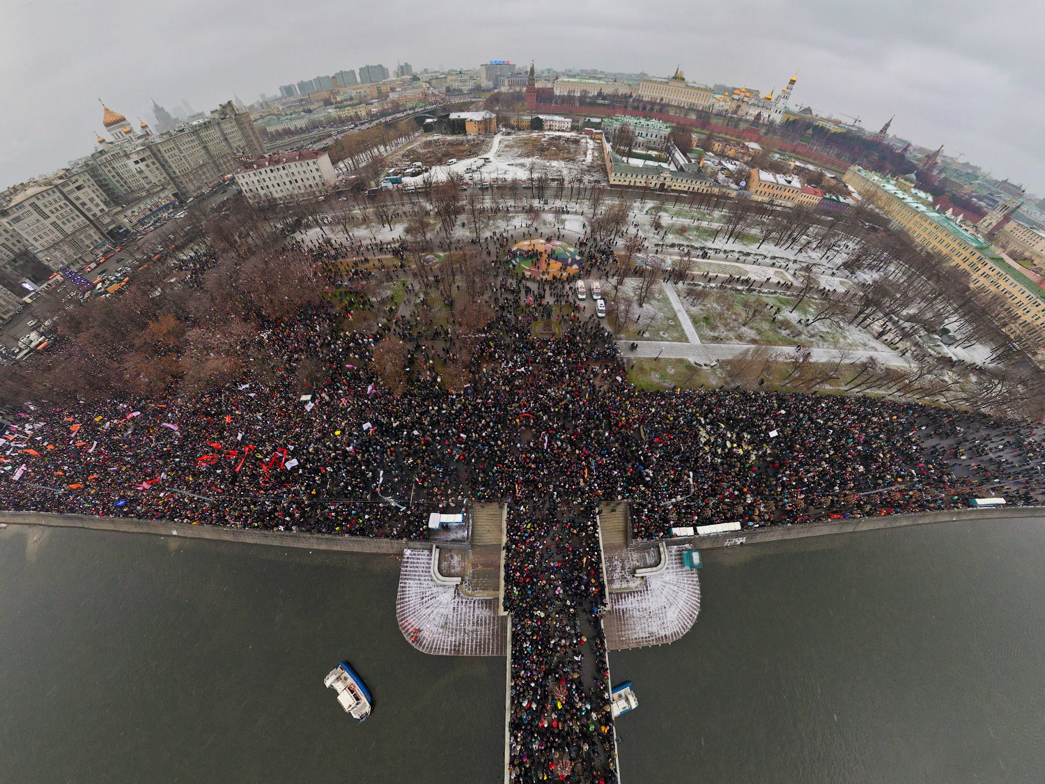 Митинг на Болотной площади в Москве, 2011 год, съёмка с дрона.