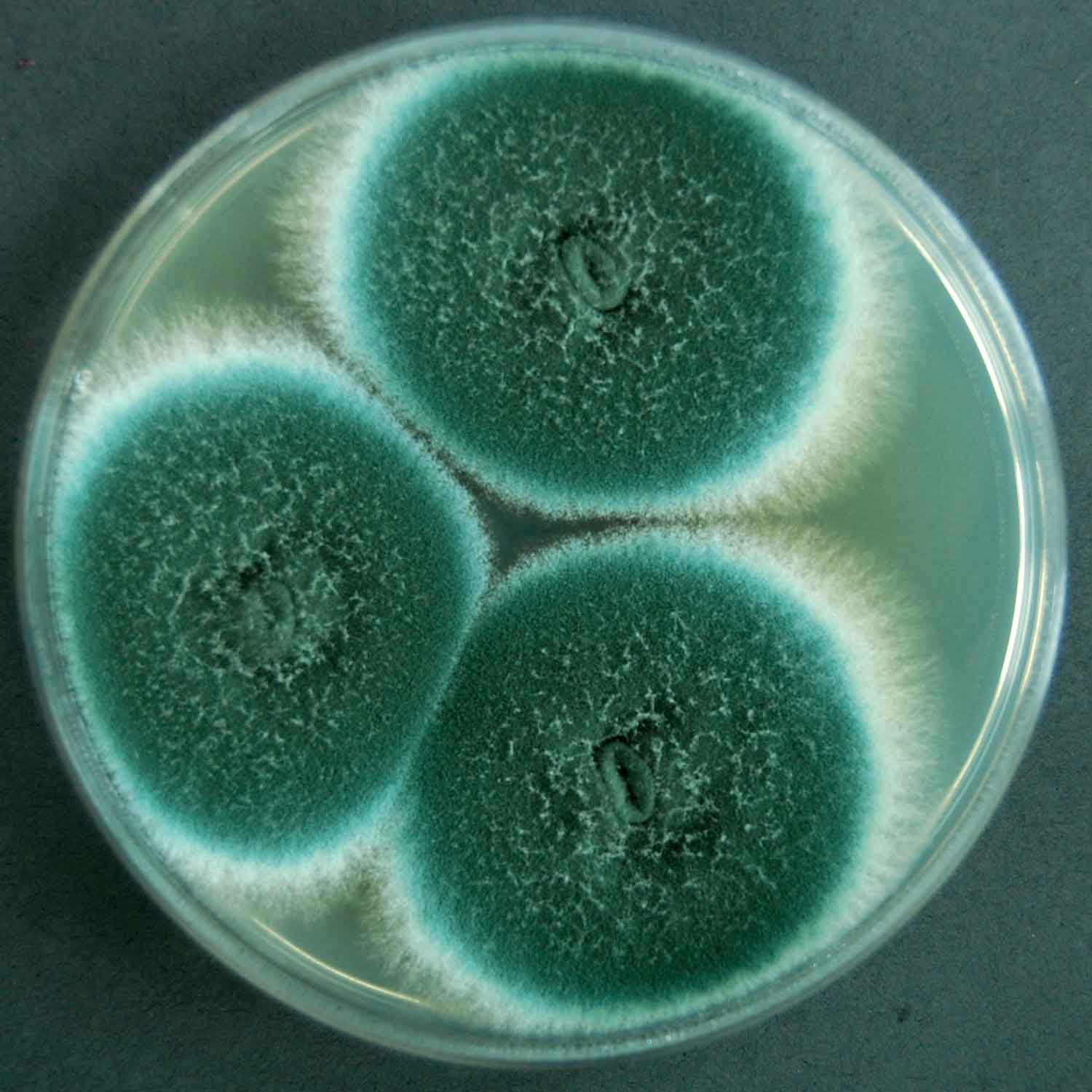 Культура грибка <i>Aspergillus fumigatus</i> в чашке Петри.