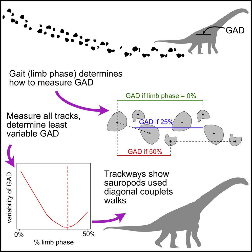 Если бы завропод попытался идти слоновьей походкой, то завалился бы на бок, либо ему бы пришлось тратить непозволительно много энергии на сохранение равновесия. Для того, чтобы понять, как же динозавр шёл, потребовалось тщательно изучить отпечатки его ног и расстояния между ними, чтобы понять, где и какая нога была в разные моменты времени. Затем авторы вычислили, как фазы движения конечностей соответствуют оставленным следам и восстановили походку.