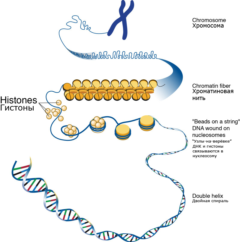 Исследователи обратили внимание на клеточные белки, гистоны, которые не являются частью генетического кода, а служат основой, на которую «наматывается» ДНК. Гистоны, как известно, играют роль в механизме «включения» генов.