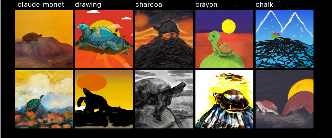 Нейросеть умеет учитывать контекст, разрешая неопределённость выбора из бесконечного множества вариантов, совместимых со словесным описанием. Такая необходимость становится актуальной, например, при описании природных сцен. Кроме описания «черепахи, сидящей на вершине горы на закате», как в примере в шапке этой заметки, система ИИ должна «додумать», как минимум, расположение освещения и теней.