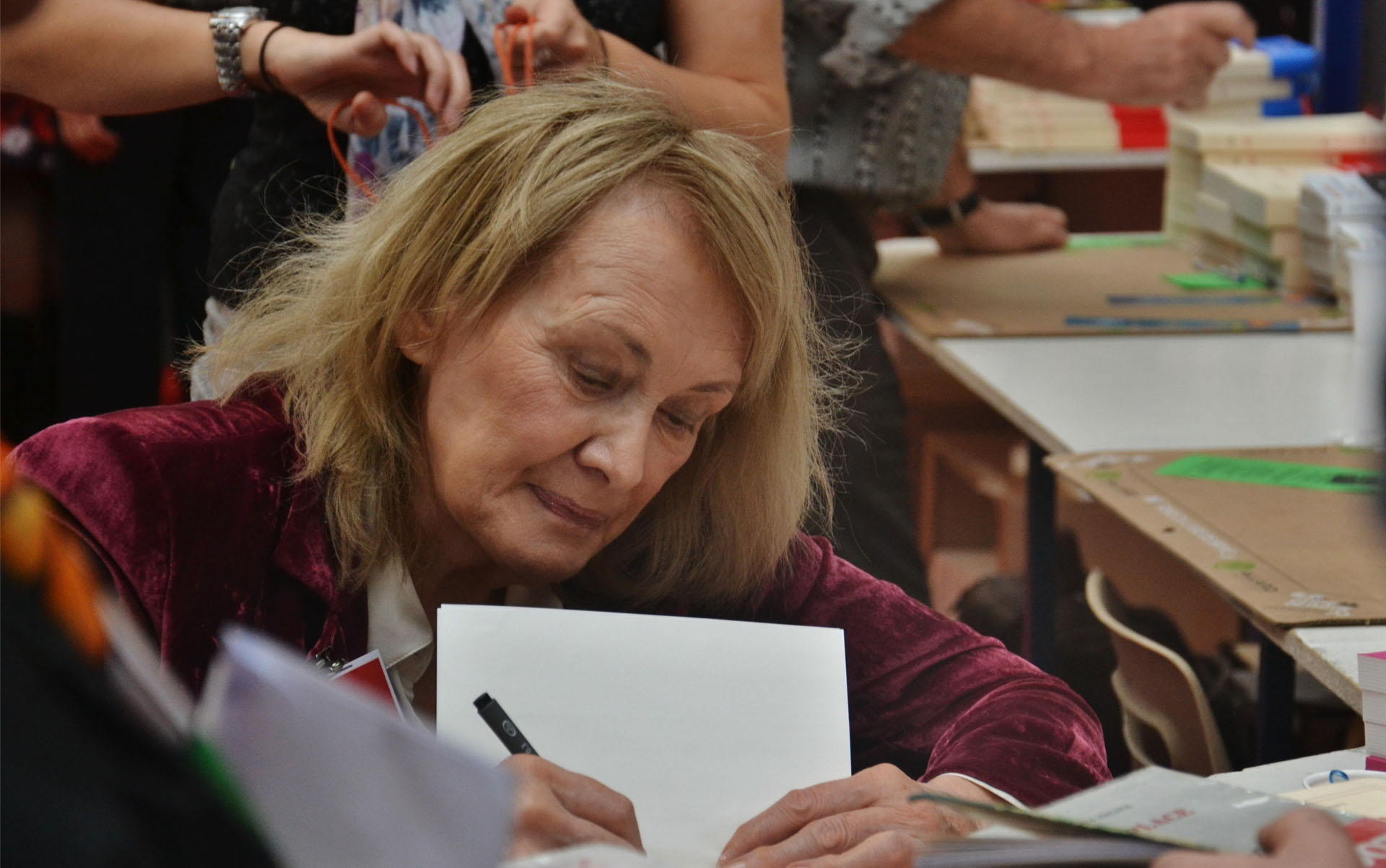 Анни Эрно подписывает книги для читателей.