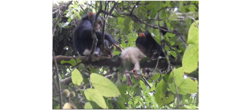 Наконец, приматологам, наблюдающим за швейнфуртовскими шимпанзе в заповеднике Будонго (Уганда), улыбнулась редкая удача: в июле 2018 года у молодой самки шимпанзе, названной в публикации «UP», родился детёныш-альбинос (да, это случилось 3 года назад. Научные статьи пишутся небыстро!). Кстати, предыдущего детёныша, рождённого UP годом раньше, убили самцы из этой же группы, и, судя по всему, инфантицид в этом сообществе обезьян — обычное дело. Поэтому мало удивляет последовавшая и на этот раз трагическая развязка. Наблюдатели определили, что родился мальчик, и на момент первого наблюдения ему было от 14 до 19 дней.