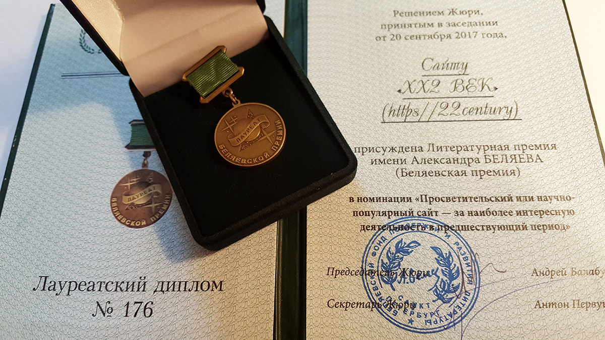 В этом году наш сайт впервые номинировался на Беляевскую премию, и её получение — огромная честь для всего коллектива. Мы искренне благодарны членам жюри, решившим отметить нашу работу как наиболее интересную, и намерены и дальше трудиться на просветительской ниве, не снижая градуса интересности и, надеемся, общественной пользы.