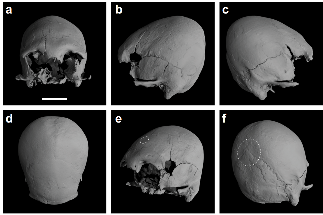 Особое внимание авторы статьи уделяют типу искусственной деформации: уплощенная лобная кость характерна для деформации путём привязывания ко лбу дощечки или иного плоского твёрдого предмета, однако определённые изменения теменных костей говорят скорее о кольцевой деформации, которой добивались, стягивая голову специальными бандажами, в результате чего череп приобретал цилиндрическую форму. Задняя часть черепа заметно шире передней — тоже признак кольцевой деформации. И ещё одна особенность: у искусственно деформированных черепов часто встречаются т.н. шовные кости — дополнительные косточки в швах черепа. И в обоих черепах из Сунгари они имеются. Обратили исследователи внимание и на эндокран — форму внутренней полости черепа, которая тоже меняется при манипуляциях с черепом. Для анализа эндокрана черепу сделали КТ и убедились, что лобная доля низкая и плоская, а затылочная — почти вертикальна. Деформация налицо! Заодно определили объем мозга: 1390 см³.