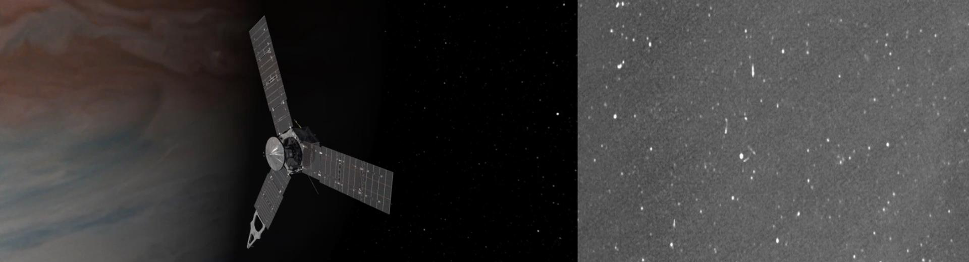 Программа работ при сближении включает четыре фотографии с камеры JunoCam — инструмента видимого диапазона, который взяли на борт для удовлетворения интереса научной общественности и для поощрения гражданской науки. Об одном из совсем недавних результатов такой камеры и коллектива гражданских учёных по созданию трёхмерной модели облачного покрова Юпитера см. наш материал за 28 сентября. Эти фотографии будут сравнивать со снимками предыдущих проектов в поисках изменений, которые могли произойти на поверхности за двадцать лет. Ожидается, что разрешение переданных снимков видимого диапазона будет около 1 км на пиксель.