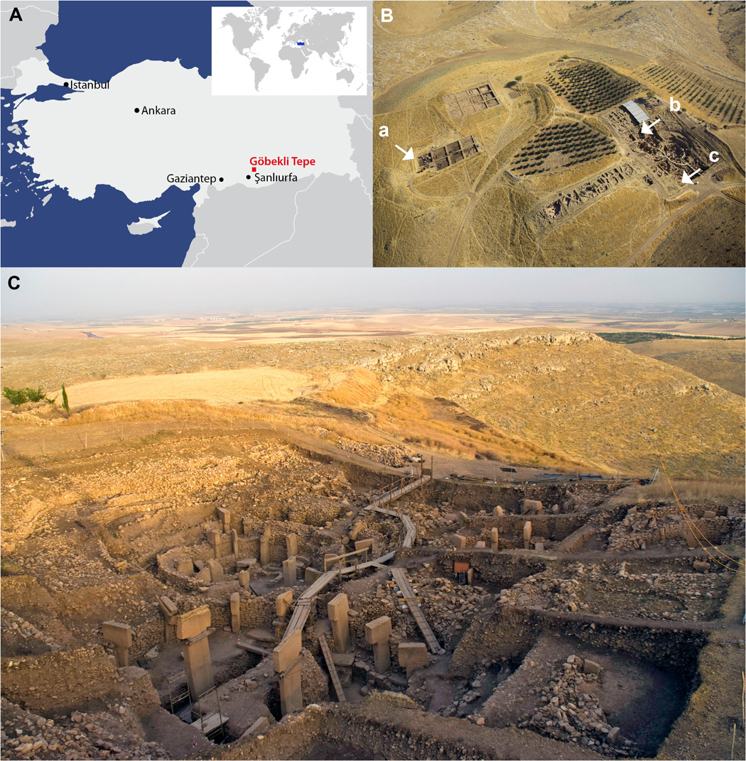 Гёбекли-Тепе — местонахождение на юго-востоке Турции, где более 11 тыс. лет назад люди впервые создали крупные сооружения из камня. Открытый в 90-е годы прошлого века, этот памятник удивил и озадачил археологов: ведь жившие здесь охотники-собиратели ещё даже не знали сельского хозяйства, однако смогли воздвигнуть 8 монументальных конструкций из известняка в виде овальных стен, в центре каждой из которых находилось по два Т-образных мегалита, самые крупные более 5 м высотой. Камни украшены резными изображениями животных и людей.