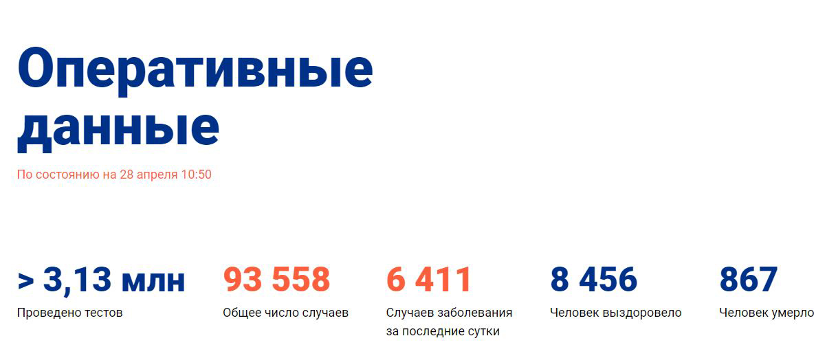 Оперативные данные по коронавирусу в России. 28 апреля 2020