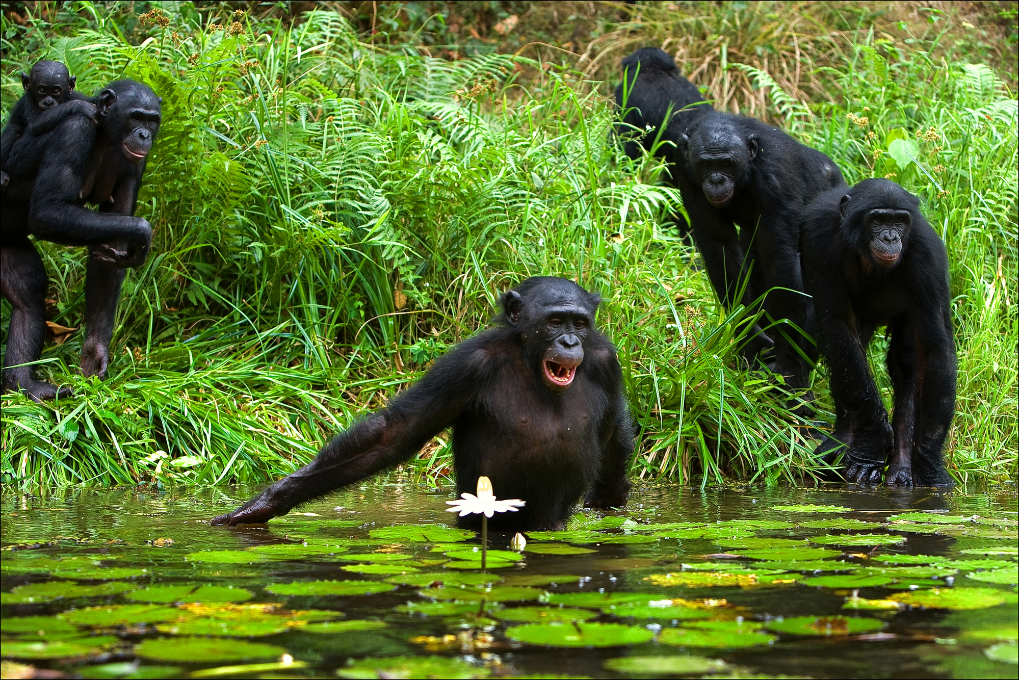 19. Особое внимание массовой публики бонобо привлекли после выхода книги этолога Франса де Вааля, который описал необычные особенности поведения и социального устройства сообществ бонобо. Эти обезьяны предстали в образе эдаких приматов-хиппи: неагрессивных и любвеобильных.