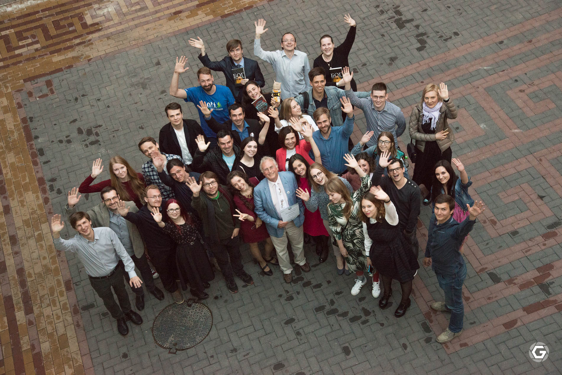 Когда учёный и популяризатор науки Ричард Докинз выступал на питерском Geek Picnic, наблюдать за ним можно было, как на рок-концерте, с расстояния пушечного выстрела — из-за огромной толпы зрителей. Поэтому крайне приятно, что 26 июня нас пригласили на встречу с известным атеистом, организованную интеллектуальным кластером «Игры разума» специально для российских популяризаторов науки. В небольшом зале ресторана «Симпозиум» собралось человек 20. Переводили биолог Александр Панчин и психолог Янина Ледовая.