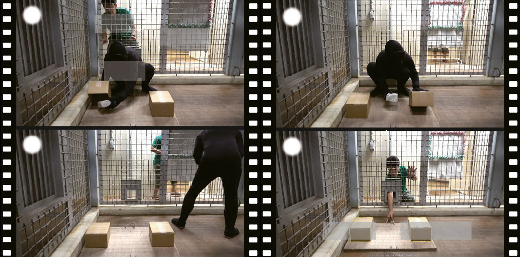 Теперь часть животных, смотревшая видео, знала, что человек за ширмой не видит происходящее, а другая часть полагала, что человек может сквозь сетку наблюдать за перемещениями камня (по сюжету Конг сначала перекладывал камень в другую коробку, а затем вообще убрал). Как же поведут себя подопытные животные? Если они просто ждут, что человек ищет предмет там, где видел его в последний раз, обе группы должны смотреть на первую коробку, то есть реагировать одинаково. В реальности реакции различались. Те обезьяны, которым показывали непрозрачную ширму, действительно больше внимания уделяли коробке №1. А приматы из группы «прозрачной ширмы», знавшие, что человек всё видел, случайным образом переводили взгляд с первой коробки на вторую и обратно — они не могли угадать, как поведёт себя актёр, ведь ему известно, что под коробками ничего нет.