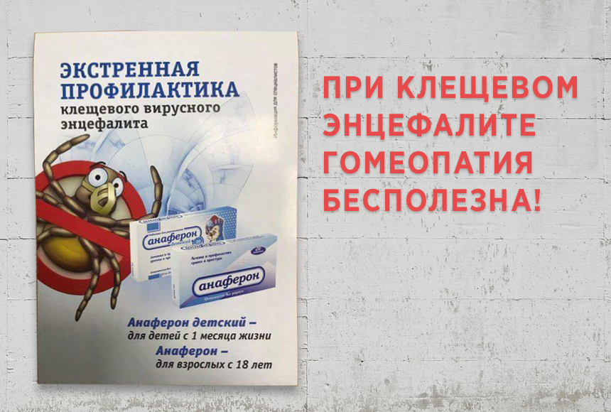 Всё началось с того, что в сети замелькала фотография информационного плаката, на котором сообщается, что экстренную профилактику клещевого энцефалита можно производить с помощью препарата «Анаферон». Мы запостили этот плакат в группе «ВКонтакте» и нам дали ссылку на приказ Минздрава аж от 2012 года, где «Анаферон» включён в «стандарт специализированной медицинской помощи детям при менингеальной форме клещевого вирусного энцефалита тяжёлой степени тяжести». Так же выяснилось, что согласно приказу Минздрава Республики Крым «Анаферон детский» следует использовать для экстренной профилактики клещевого боррелиоза и клещевого энцефалита. Сейчас мы коротко объясним, почему это *****, ***!