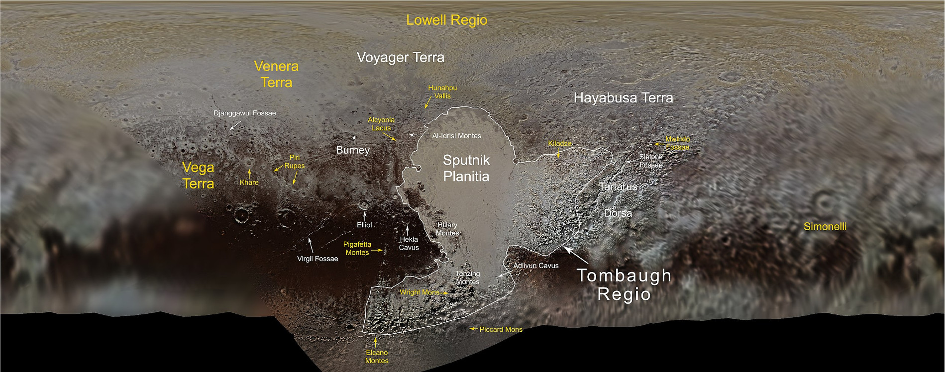 Детальный снимок поверхности Плутона, сделанный зондом New Horizons при облёте (2015 год). NASA/JHUAPL/SwRI.