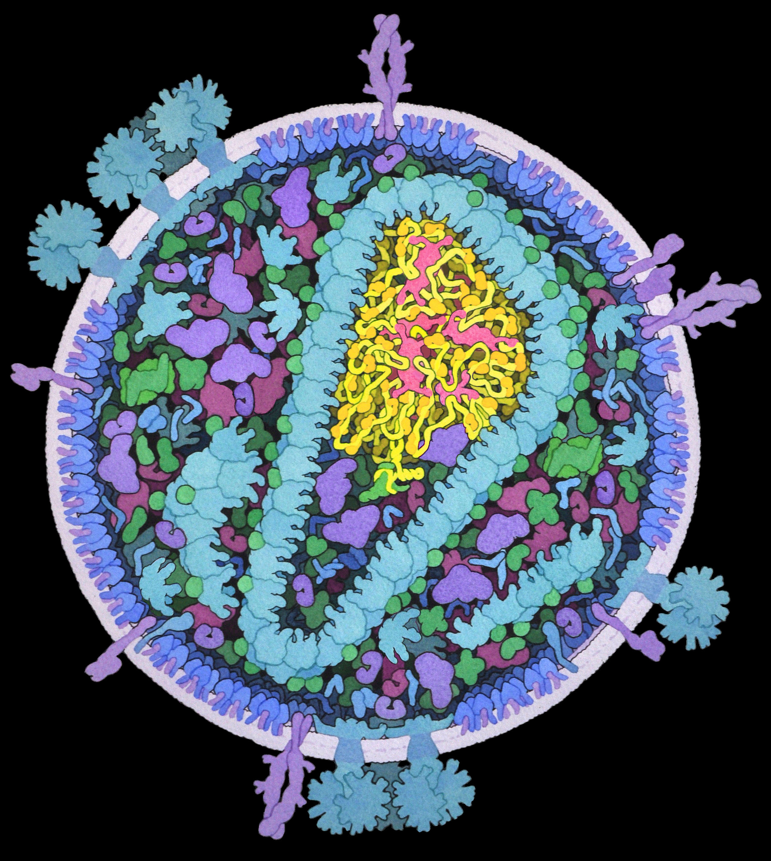 Ретровирусы — это вирусы, чей наследственный материал хранится в виде молекул РНК. Один из самых известных ретровирусов — ВИЧ (на картинке).