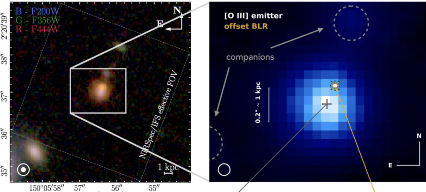 Космический телескоп Джеймса Уэбба зафиксировал слияние двух галактик со сверхмассивными чёрными дырами…